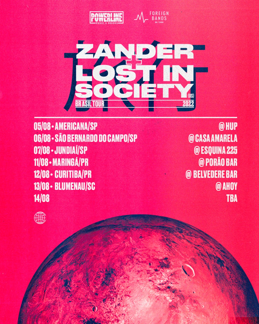 As produtoras Foreign bands on tour e Powerline anunciam uma tour com as bandas Zander junto do Lost in Society (USA). A tour passará 8 cidades entre os dias 5 agosto até o dia 14 de agosto: Americana/SP, São Bernardo do Campo/SP, Jundiaí/SP, Maringá/PR, Curitiba/PR, Blumenau/SC e Florianópolis/SC. Haverá algumas datas extras apenas com o Lost in Society e convidados locais.