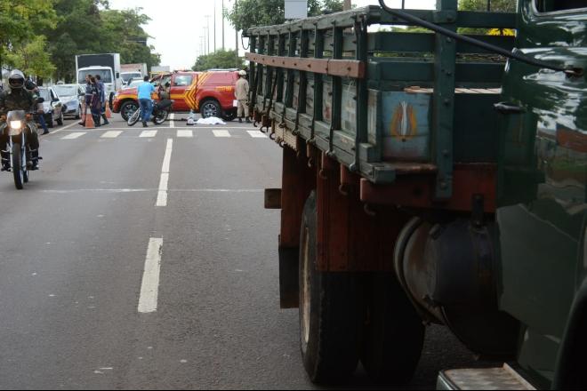 A diarista Lucimar Souza Monteiro, 41 anos, morreu em acidente de trânsito na manhã desta quarta-feira (19), na Avenida Gury Marques, em Campo Grande. O choque entre um carro, que fugiu, a motocicleta em que ela estava, e o caminhão que a atropelou ocorreu em frente ao radar da via, perto da faculdade Anhanguera, no Bairro Universitário.