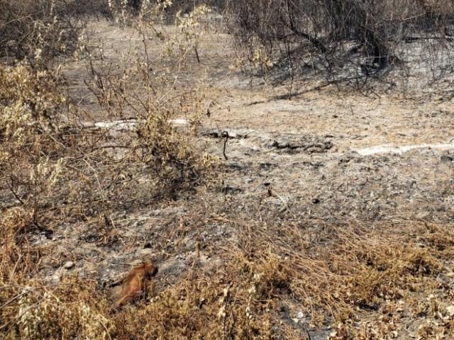 Capivara morta após fogo atingir vegetação no Passo do Lontra, em Corumbá (Foto: Direto das Ruas)