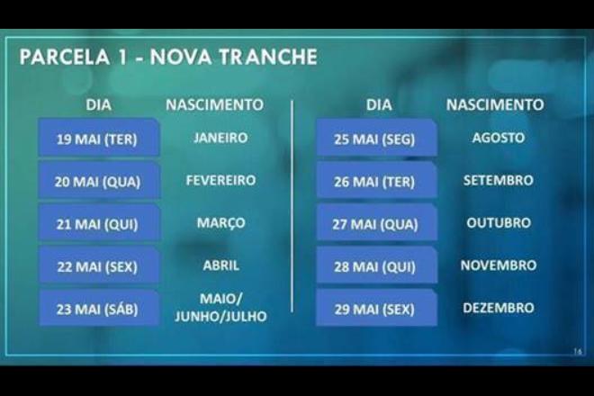 Além disso, a Caixa vai creditar a parcela 1 do Auxílio Emergencial para mais 8,3 milhões de beneficiários entre os dias 19 e 29 de maio. No total, serão disponibilizados mais R$ 5,3 bilhões nas contas indicadas no momento da inscrição, conforme calendário a seguir: