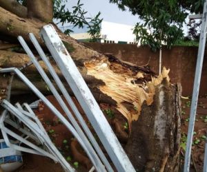 Apesar de rápida, a tempestade causou estragos, como destelhamento de casas, queda de árvores e de placas de sinalização e danos em estruturas de prédios.